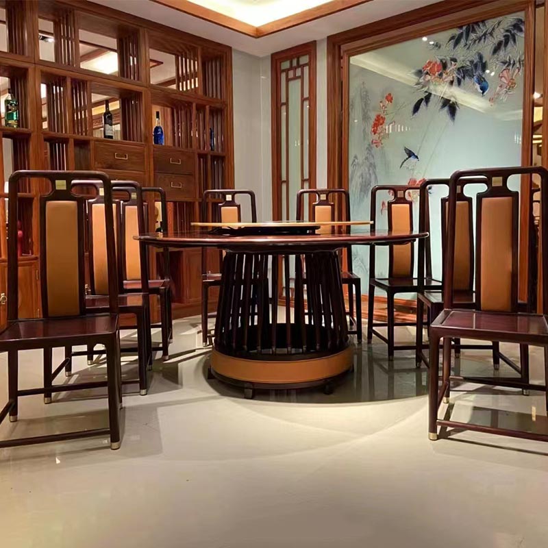 Жаңа қытай стиліндегі раушан ағашы дөңгелек асхана үстелі